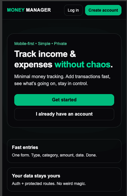 A personal finance app for tracking transactions, categories, and monthly spending with a clean, focused interface.
